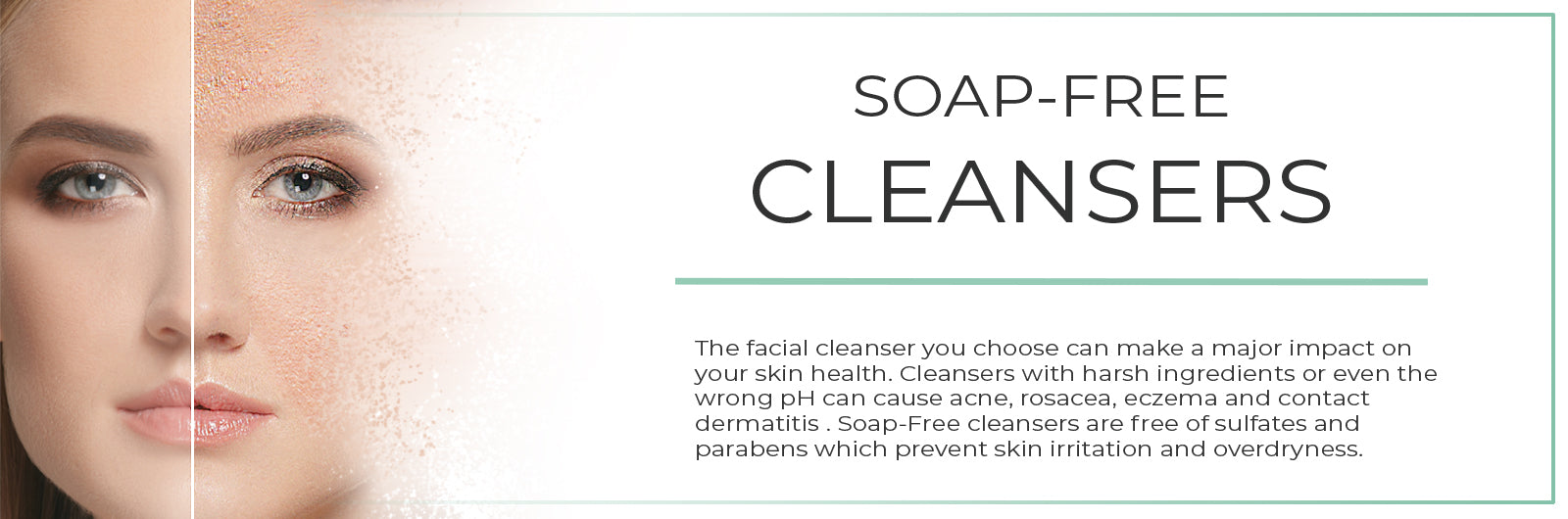 The facial cleanser you choose can make a major impact on your skin health. Cleansers with harsh ingredients or even the wrong pH can cause acne, rosacea, eczema and contact dermatitis, eczema and contact dermatitis. Soap-Free cleansers are free of sulfates and parabens which prevent skin irritation and overdryness.